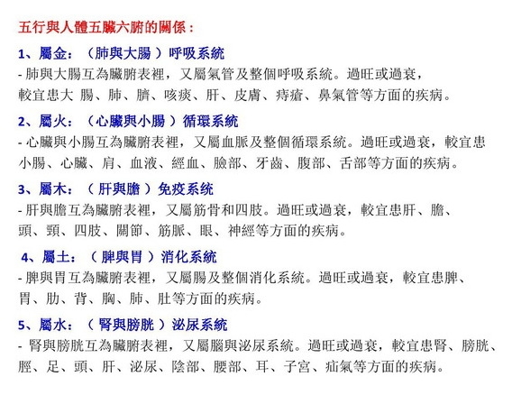 - 肺與大腸互為臟腑表裡,又屬氣管及整個呼吸系統。過旺或過衰,